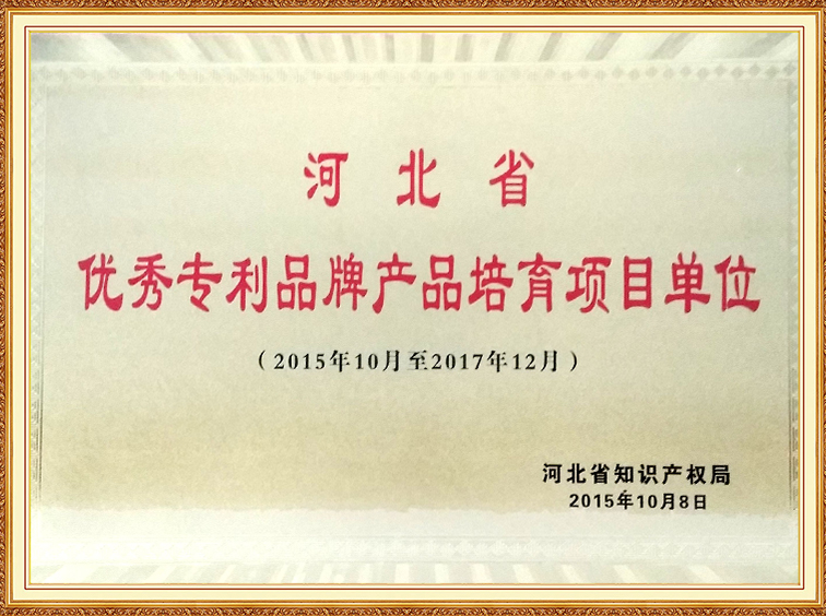 河北省优秀专利品牌产品培育项目单位