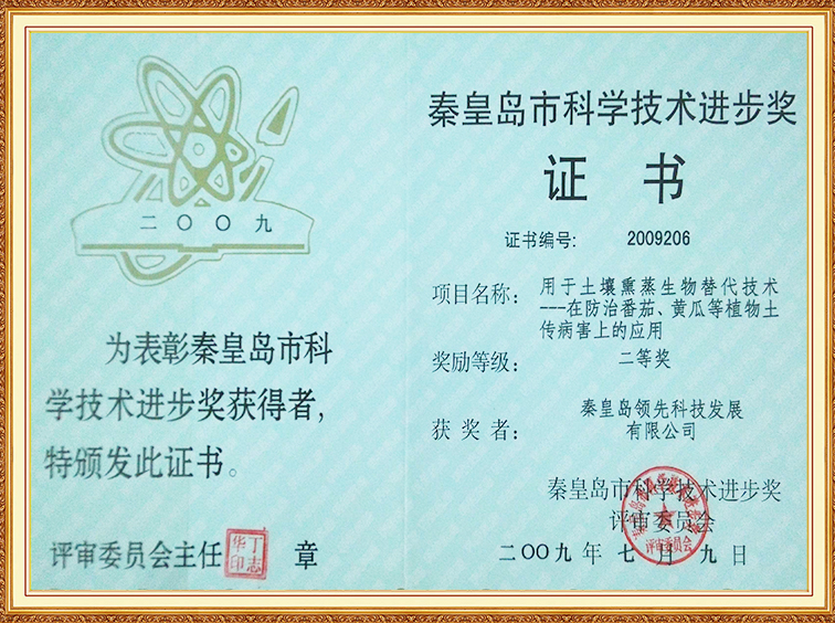 土壤熏蒸在防治番茄、黄瓜土传病害上的应用—秦皇岛科学进步二等奖