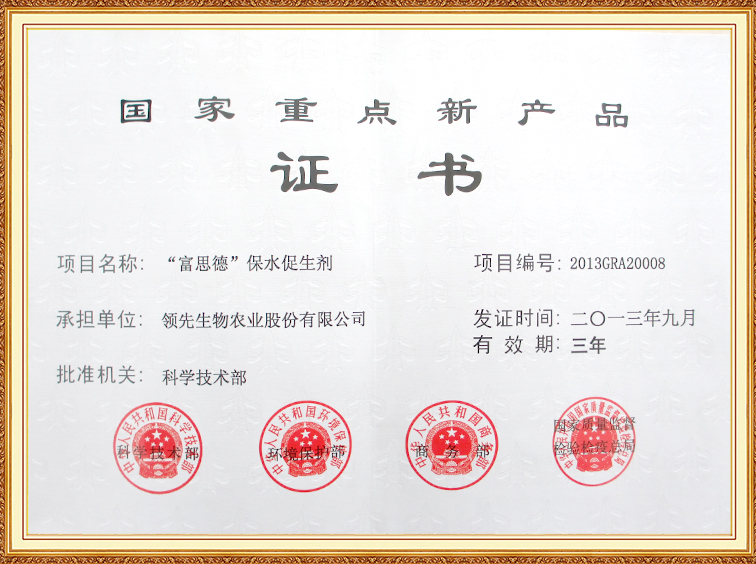 施利康牌含腐植酸水溶肥料—第十八届中国杨凌农博会“后稷奖”